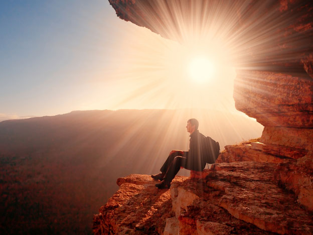 man-red-rock-cliff-sunrays-600x450opt-1089800718