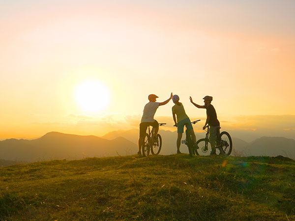 MO - 04172024 - friends on bikes celebrating on a ride at sunset